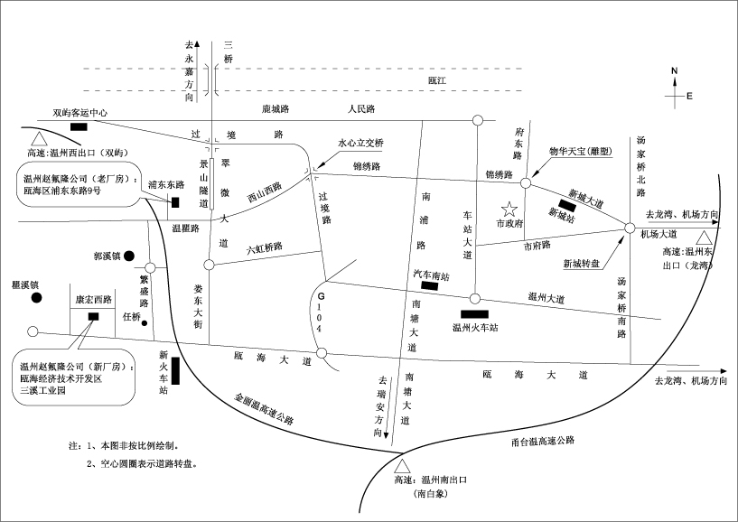 温州火车站:出租车到浦东东路9号赵氟隆(老厂房),大约18元。